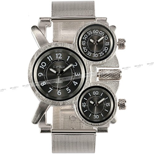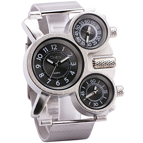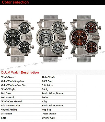 -. Binding : Watch -. Brand : Oulm -. Department : Mens -. EAN : 6914126230552 -. Feature : Original Japan CITIZEN Miyota Quartz Movement / High abrasion resistant glass,high quality watch strap,stainless steel backcase with Hi-tech laser logo / Daily water resistant.(Please Don't Press Any Key Underwater),watch crown with enviromental IPS bronze electroplating / Free 1 Year Guarantee from Us / Come with Gift Box -. Label : OULM -. Manufacturer : OULM -. MPN : OULM 1167G BLACK -. PartNumber : OULM 1167G BLACK -. ProductGroup : Watch -. ProductTypeName : WATCH -. Publisher : OULM -. Studio : OULM -. Title : OULM Men's Military Cool Sport Army Style Quartz Wristwatch Stainless-steel Strap 3 Time Zones Dials Display Oversize Case + Box