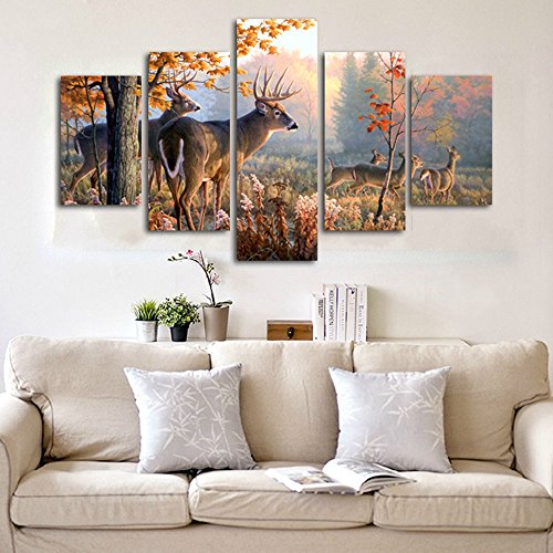 -. Title : JuYi Art HD Painting Canvas Prints for Home Decoration, Stretched- 5 pcs Deer Picture Print on Canvas- Modern Home Decor Wall Art ( No Framed )