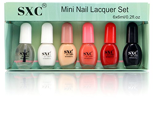 -. Binding : Misc. -. Brand : SXC Cosmetics -. EAN : 0738964869851 -. Feature : 30 pieces DIY Mini nail polish set,?6ml/0.2oz Nail glass bottles with nail brush / High quality, No crack Nail polish, Assorted colors nail lacquer, Affordable price / Special and exclusive wide lacquer Nail Brush bristle for complete coverage / No need UV lamp, LED lamp nail dryer, Quick dry formula, Use Top coat and base coat / Works great with SXC nail Polish set, Nail brushes, Nail manicure pedicure accessories -. IsAdultProduct : 0 -. Label : SXC Cosmetics -. Manufacturer : SXC Cosmetics -. MPN : SM001SET -. PartNumber : SM001SET -. ProductGroup : Beauty -. ProductTypeName : BEAUTY -. Publisher : SXC Cosmetics -. Studio : SXC Cosmetics -. Title : SXC Cosmetics 30 Mini Nail Polish Set, Professional Quality & Quick Dry, 6ml/0.2oz Each, Perfect Gift For Holiday -. UPC : 738964869851