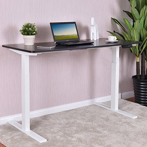 -. Feature : 【Ergonomics Design & Wide Application】You can adjust the height of the desk from 27.5" to 46.45", suitable for most adults. The desk reduces your neck or back pain since it offers better posture. There is a hole in the side of table top to make your cables organized. The desk works also perfect as writing table for children. When children grows up, you can adjust the height of desk, rather than buying new desk every year. / 【Spacious Tabletop & Stable】With a table top of 55.5x26", you have plenty of space for 2 monitors, paper works, books, coffee, plants and more. One level design makes the desk simple and modern. And the table is made of metal frame and thick MDF board, which is stable enough and provides large weight capacity(approx: 221lbs). / 【Lift System & Touch Control】The standing desk equips with 2 motors, it lifts or falls with 1" increments. Rapid and quiet. The desk comes with LED view screen, which tells accurate height and easy to operate. During busy day you touch the "﹀"/" "﹀"to customize desired heights in seconds, which is elegant and energy -saving. The desk comes with also memory function. / 【Installation & Easy to clean】The standing desk comes with electric metal frame and wood surface. Installation is not complicated. With paint finish it's rust-proof. The surface is anti-scratch and easy to clean with wet cloth. / 【Shipping & Customer service】Ups or usps will deliver the item to your house in 3-6 business days after you placed an order. We packed the standing desk as good as we can, if there is missing or damaged parts, please contact us first and offer us pictures of damaged part, we will solve the problem as the way you want(discount or replacement)
