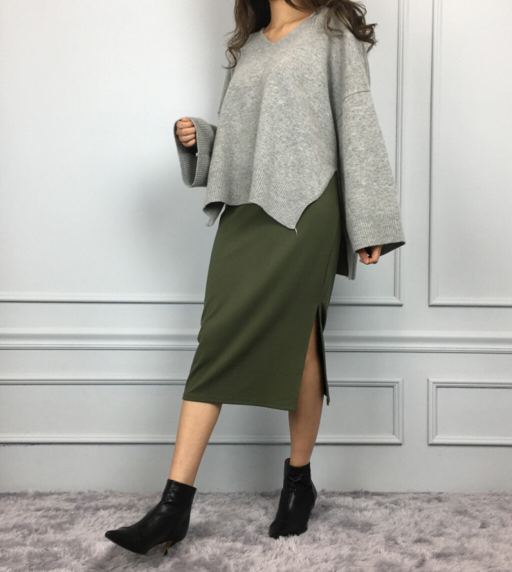텐션감이 있는 소재에 옆부분에 트임 슬릿까지 있어서