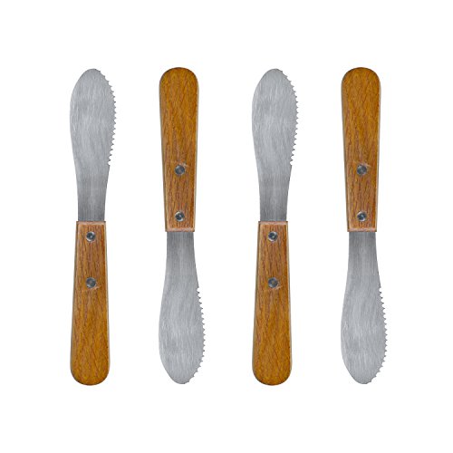 - Stainless steel spreader at 8" inches long. Wood handle with the blade measures 4" inches long and 1.25" inches wide. Comes in a package of 4 stainless steel spreader knives.