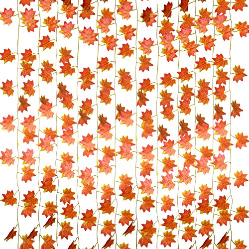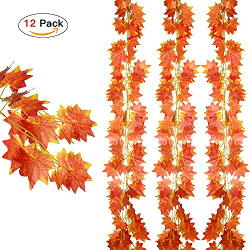 12 pack Autumn Leaves Garland Maple Leaf Vine Fake Foliage Decoration Home Garden