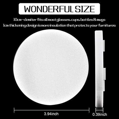 -. Feature : 3.94¡± COASTERS ¨C 10 cm diameter provides a large & solid surface. 1 cm thickening design is more insulation. Perfect size is fits most of cups, wine glasses, mugs, tumblers and flasks / AMAZING COASTER SET ¨C Made from natural marble that looks so beautiful. 3 rubber feet underneath each coaster provide extra grip & protect your furniture surfaces / ELEGANT & MULTIUSE ¨C Set of 6 coasters not only protect furniture surfaces from drink ring stains but can be a modern & sophisticated addition d¨¦cor in home, office & bar / HEAVY & WONDERFUL GIFT ¨C These durable & sturdy coasters will never stick to the bottom of your bottles or glasses. This coaster set is great housewarming gift for Christmas, New Year, Wedding, Birthday / 100% HIGH QUALITY GURANTEEN ¨C Full refund or return for any reasons. Purchasing with confidence now!