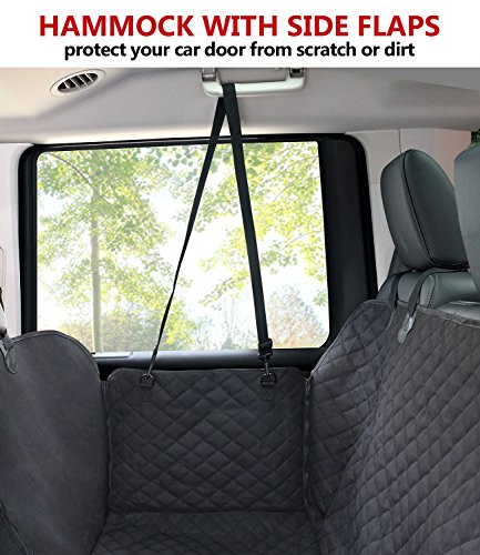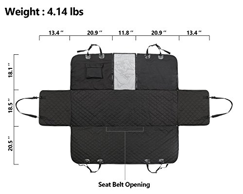 *Approximately(inculded SIDE-FLAPS): 80.4x57.1 inches, Perfect for most cars, Velcro opening for seatbelt, Nonslip backing net material, secures over seat using four headrest loops, two seat anchors, helping pet dogs stay in place cozily
