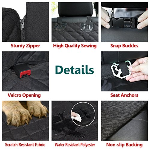 *Including Built-in NON-SLIPPING BACKING 2 Seat Anchors VELCRO OPENINGS for your seat belts to prevent seat cover from sliding around, 2 side flaps can be zippered up for a full hammock which can protect your car door from scratch during driving