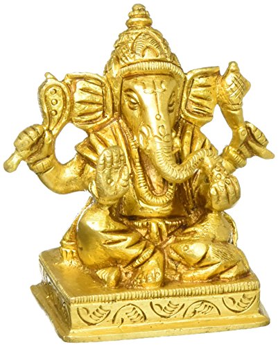 Gangesindia Miniature Lord Ganapati Brass Figure (6.99 CM, 5.34 CM, 4.45 CM)