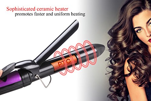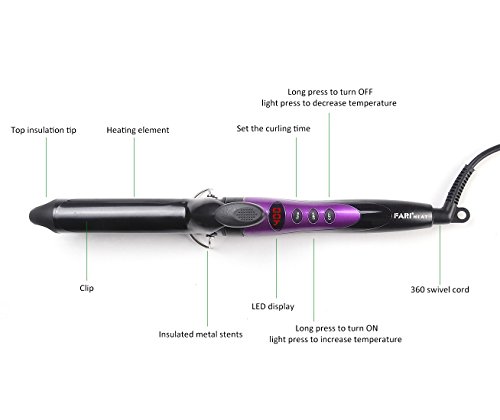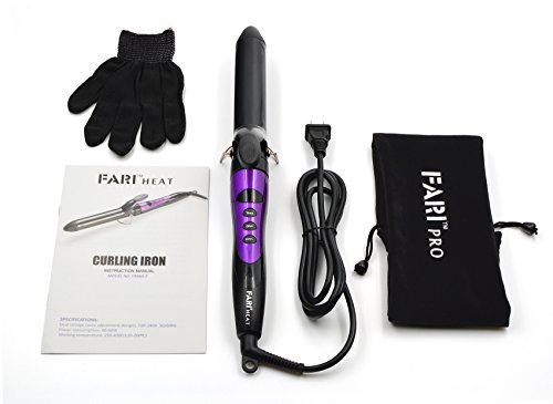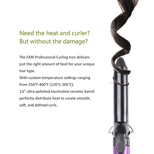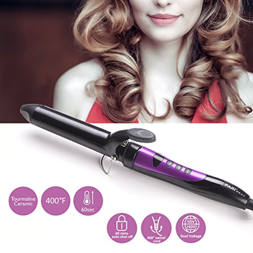 FARI 1.25 Inch Hair Curling Iron Wand with Ceramic Tourmaline Coating, Dual Voltage Professional Digital Hair Curling Barrel with Insulated Tip, Heat Resistant...