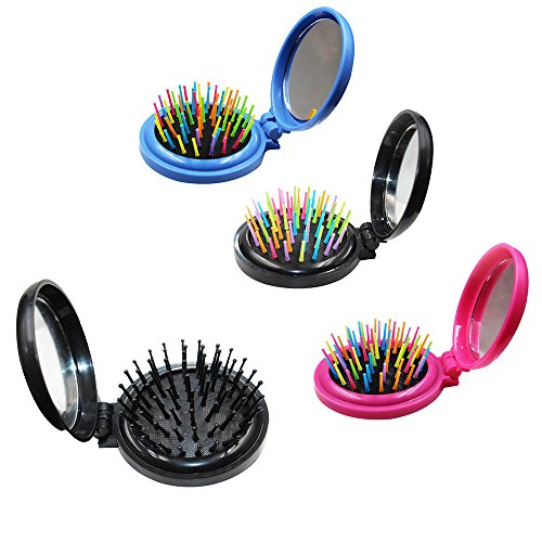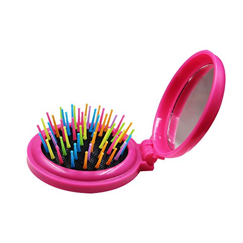 Soft Hair Brush - Portable Mini Folding Hair Brush With Mirrro Mini Pocket Hair Brush Hair Comb, Gifts For Women (Rainbow Pink)