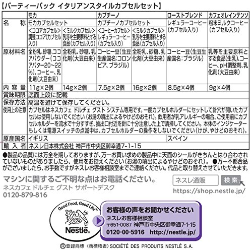 원본상품명: ネスカフェドルチェグスト 用カプセルパティパックイタリアンスタイル 16P(12杯分)