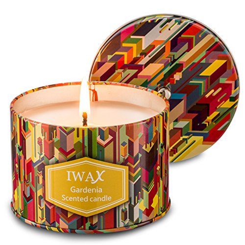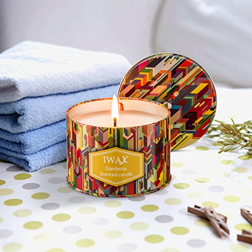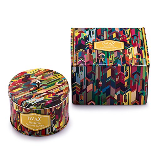 A Portable Travel Tin Candles: Gardenia scented 8.5 Oz & 9 CMs Diameter & burn for 65-75 hours.