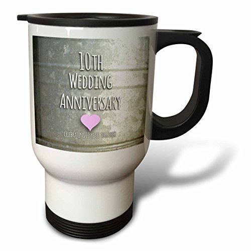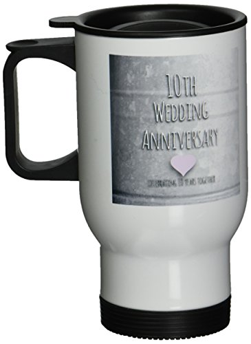 3dRose 10th Wedding Anniversary Gift-Tin, Stainless Steel Travel Mug, 14-Oz
