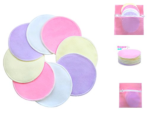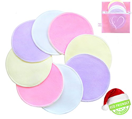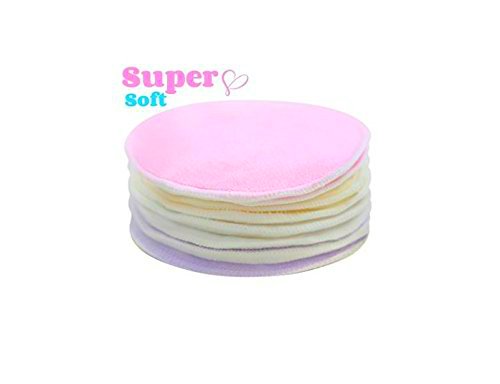 -. Title : Organic Eco Friendly Bamboo Washable Nursing Breast Pads with Free Laundry Bag, Reusable, Super Soft and Ultra Absorbent in discrete colors for mothers when feeding their newborn baby