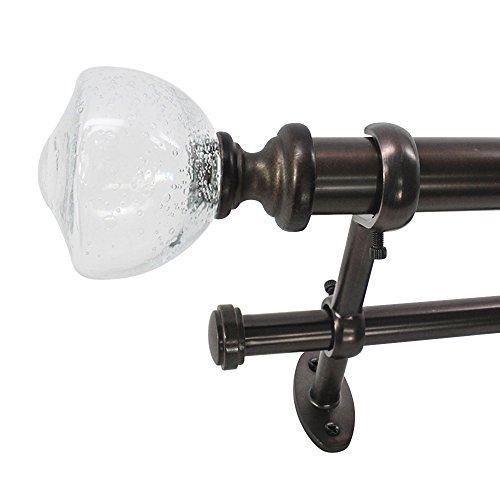 BEME INTERNATIONAL 22 PARK WEST 1-INCH GLASS URN TELESCOPING DOUBLE DRAPERY ROD SET, 18 TO 36-INCH, DARK SIENNA