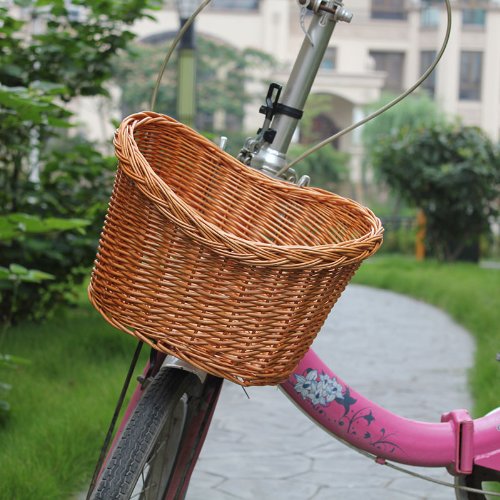 Title : RURALITY Wicker Bike Bicycle Front Handbar Basket with Iron Hooks