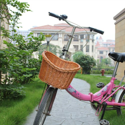 Feature : Two iron hooks wrapped with transparent plastic / Easily install and uninstall when outdoor / Sturdy because it was made of durable wicker / Dimensions:12.5"(from left to right) X 10.5"(from front to back) X 8.5"(bottom to max height) / Good choice for bike decoration