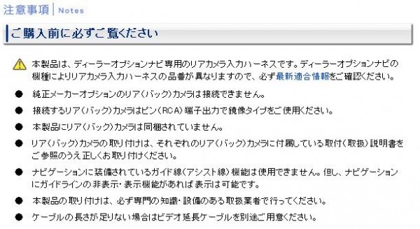 | セット内容 | ・リアカメラ入力ハーネス ・オス→メス変換アダプター ・結束バンド×2 ・取扱/取付説明書 |