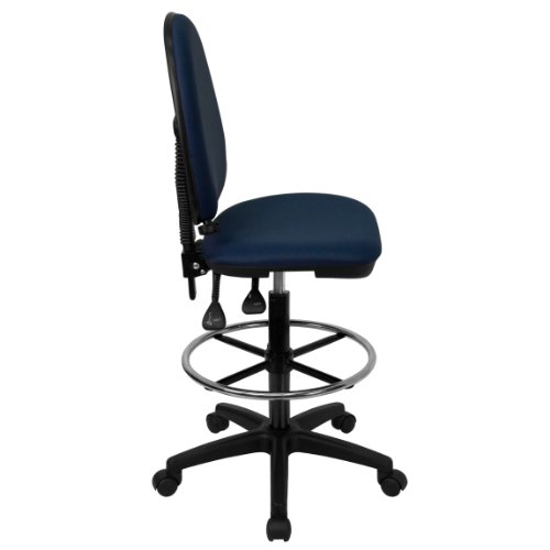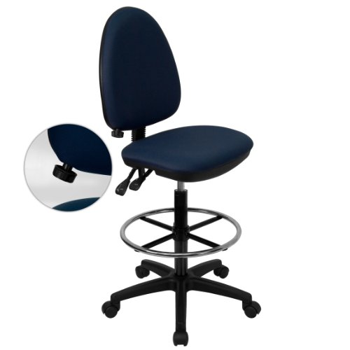 -. Title : MFO Mid-Back Navy Blue Fabric Multi-Functional Drafting Stool with Adjustable Lumbar Support