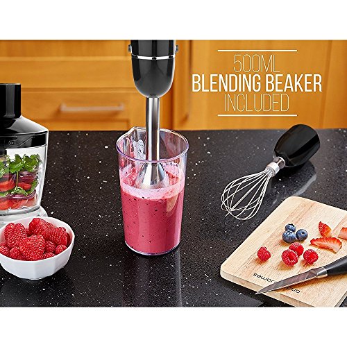 Chop, whizz, whisk and blend with our super sleek hand blender. The 600W motor allows effortless blending - you can blitz soup in just seconds! Powerful yet quiet, this smooth operator has an impressive arsenal of attachments which will take the strain out of everyday kitchen tasks.