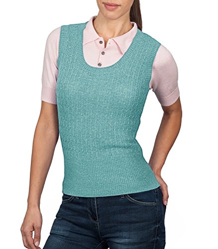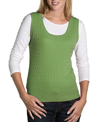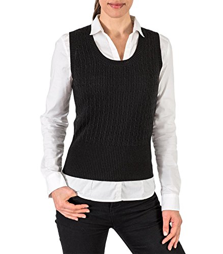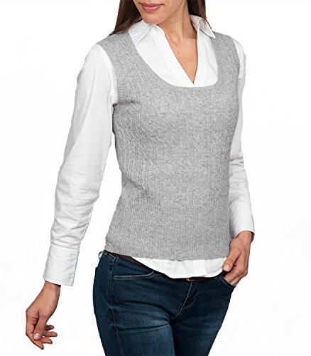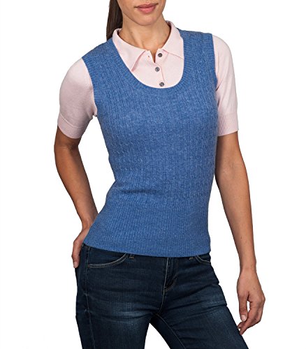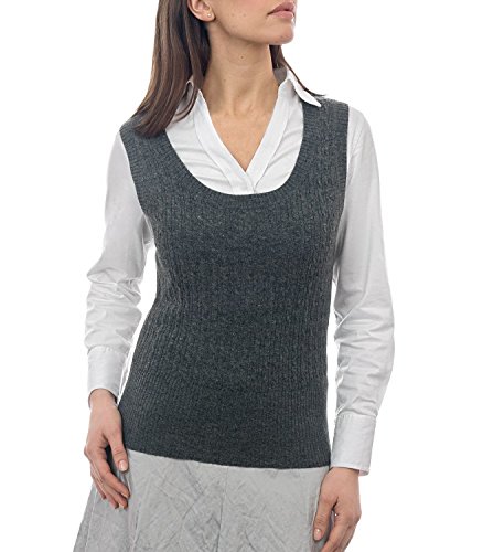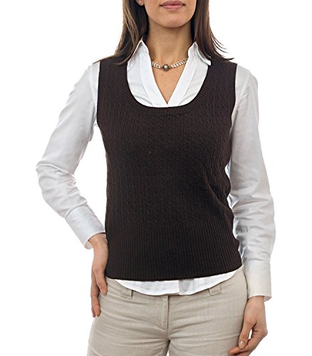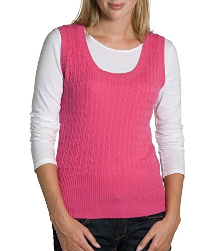 Product Description A trendy sweater vest incredibly warm to wear. With a classic cable design and knitted deep ribbing, this sweater vest has a distinctive look of its own. And the stylish scoop neck shape will look super with a frilly blouse or plain shirt. 0