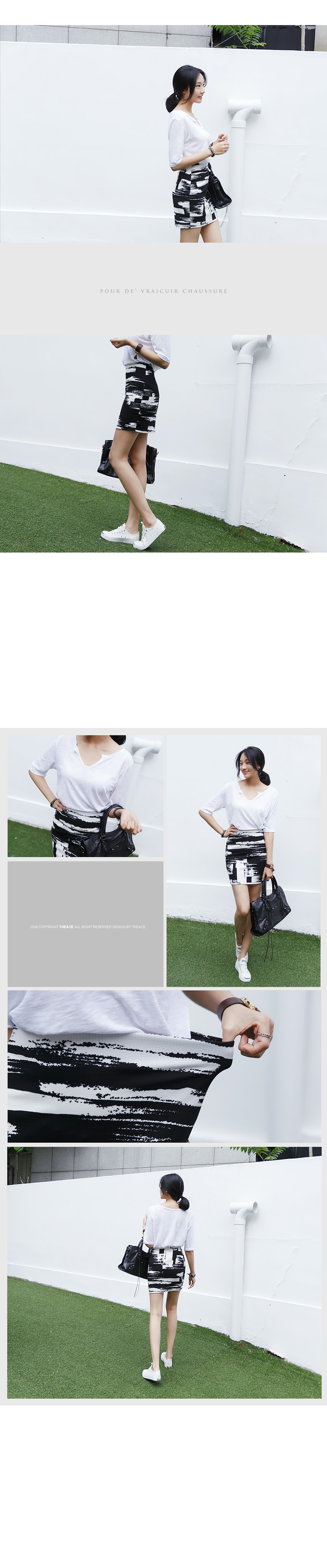 1. 부담스럽지 않은 패턴이라 세미정장룩에도 잘맞는 밴딩 스커트2. 스판화 폴리 혼방으로 이뤄져 부드러운 텍스쳐와 쫀쫀함은 기본!3. 허리 밴딩이라 좀 더 여유로운 활동성을 안겨드리구요, 무릎 살짝 위까지 올라오는 시원한 기장이라 여름에도 코디하기 좋아요.4. 색상은 화이트, 핑크 두 가지 컬러로 진행.5. 사이즈는 55~66반까지 착용 가능하답니다.