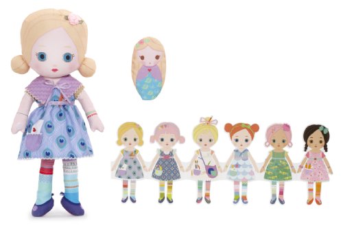 - Feature : 13-Inch soft doll made of unique soft fabric / Machine washable / All have velcro hands for holding hands with friends / Includes finger puppet dolly and string of paper doll cross-sell / Each doll includes special 3D details that make her unique from a flower bracelet to a bow headband; This doll does not sing