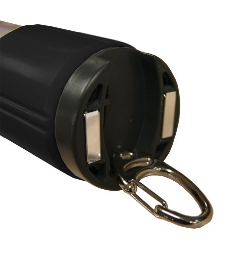 - Feature : Complete multi-function LED lantern with 4 modes, high, low, red and red SOS flashing / Can be used as a lantern or flashlight / Strong magnet on bottom for hands free placement as well as a handy, built in carabiner for hanging / Molded in rubber lens protector and durable ABS casing for high impact resistance / Compact size at 4.5x1.5x1.5 and weighs less than 5 oz. with batteries installed (batteries not included)