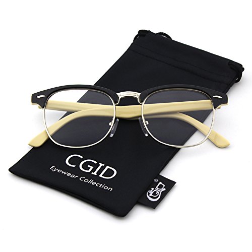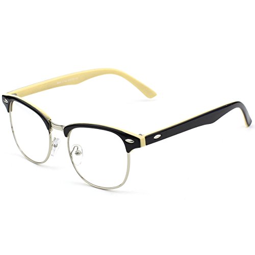 | Happy Store CN56 Vintage Inspired Classic Horn Rimmed Nerd Wayfarers UV400 Clear Lens Glasses |