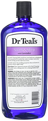 Dr. Teal's foaming bath transforms an ordinary bath into a relaxing spa with luxurious essential oils to soothe the senses, relax tense muscles and provide relief from stress. Lavender essence has soothing properties that are known to encourage a better night's sleep. This finished product is not tested on animals. Made in the USA. Distributed by advanced beauty systems.Feature