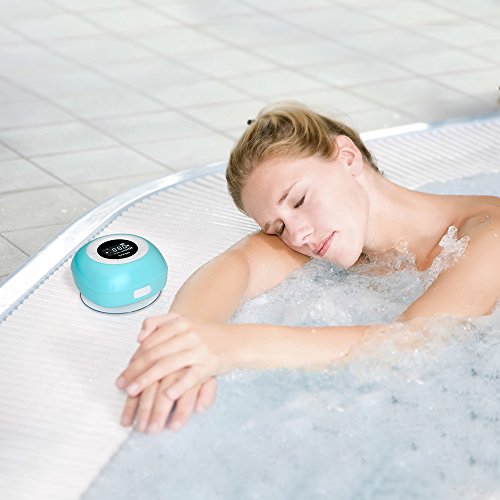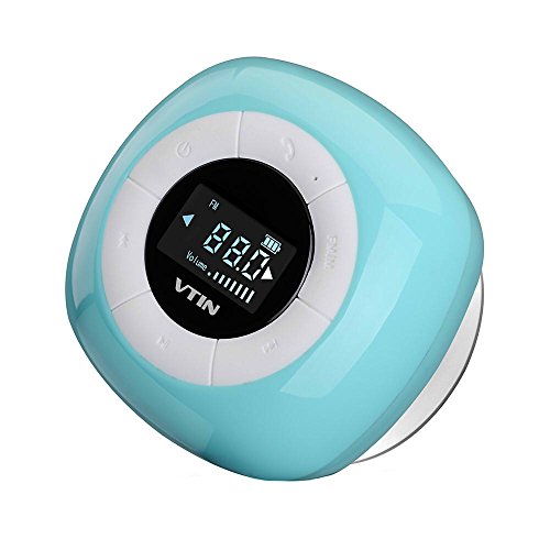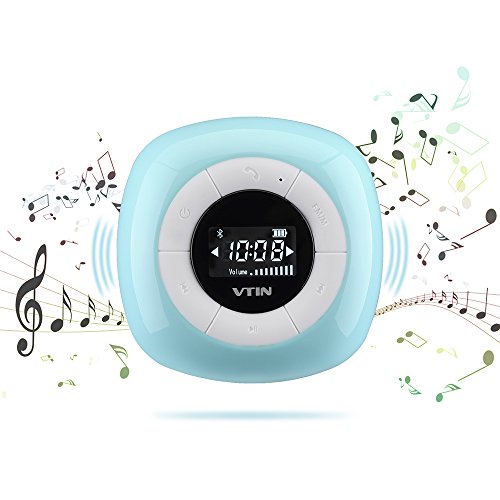 Title : Vtin Relaxer Bluetooth Speaker with FM Radio, Mini Water Resistant Shower Speaker with Bluetooth 4.0, LCD Display, Built-in Mic and Suction Cup-Blue
