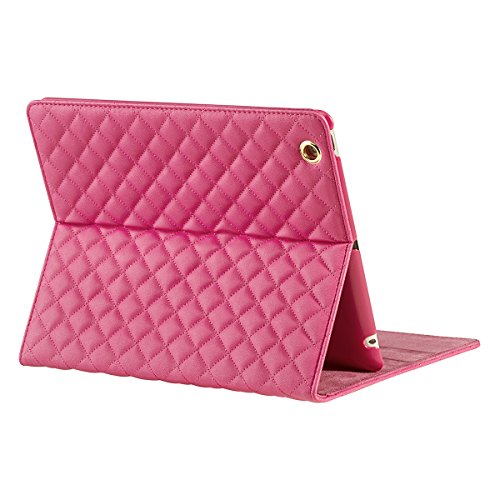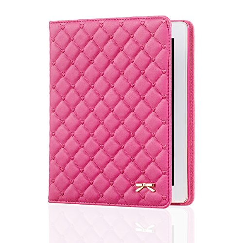iPad Case,iPad 2 3 4 Case,Bestwo Embroidery Quilted Design PU Leather Smart Protective Stand Case Cover with Auto Sleep/Wake for Apple iPad 2/3/4-Rose Red(9.7 Inch)