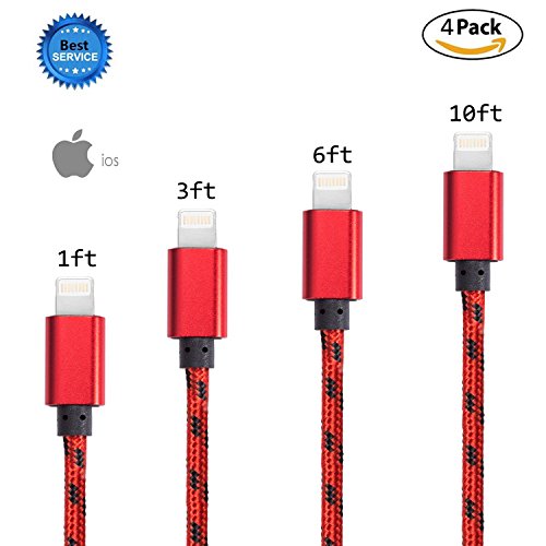 -. Feature : [1FT+3FT+6FT+10FT each 1pcs]: The 1ft for the outside or computer,the 3ft for the car, the 6ft for the bedside or work and the 10ft for the couch.4 pack lightning cables in assorted lengths are great replacements for the standard cables for difference occasions. / [Fast charging ]: 8 pin Lightning to Cable with thicker copper wires ensure speedy charging, saving much of time to re-full power to your devices; / [Great charging performance]: Sync and charge at the same time on your windows PC or Mac.Sync and Charge at fast speeds on your lightning devices.Its durability, connectivity, combatibility, and is 100% Gauranteed the safe for your device. / [Compatibility]: iPhone 7/ 7 Plus/ 6S/ 6S Plus/ 6/ 6 Plus/ SE/ 5S/ 5C/ 5, iPad Air/ Air2/ Mini/ Mini2/ Mini3, iPads, iPods and all Apple lightning devices. / [Buy with Confidence ]: 30 days Money Back and 12 months Worry-free Product Guarantee for every purchase.