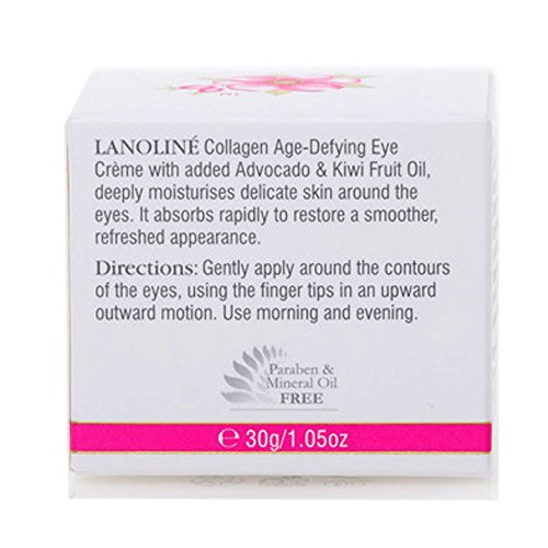Lanoline Collagen Infused Vitamin C Age-defying Eye Creme with Avocado and Kiwi Fruit Oils 30gr/1.05oz Deeply moisturizes delicate skin around the eyes. Absorbs rapidly to restore a smoother, refreshed appearance.
