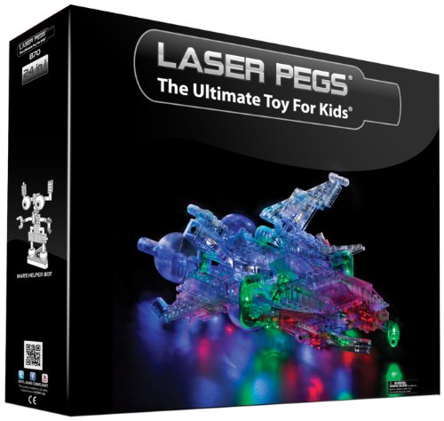 -. Feature : Includes 35 Laser Pegs, 125 construction parts, a Triangle Power Base, a Peg Cord and Model Instructions / Build the light up Spaceship and 23 more light up models like the Baby Crocodile, Baby Dragon and the Dinosaur / Once connected to a power base, each Laser Pegs shape feeds the next to light up as you build / 3 Light Settings: On, Fast Flash, Slow Flash; Laser Pegs' unique design makes them compatible with other major construction kits / 100% recyclable, LED life expectancy of 100,000 hours or 11 years, 90 day no questions asked warranty