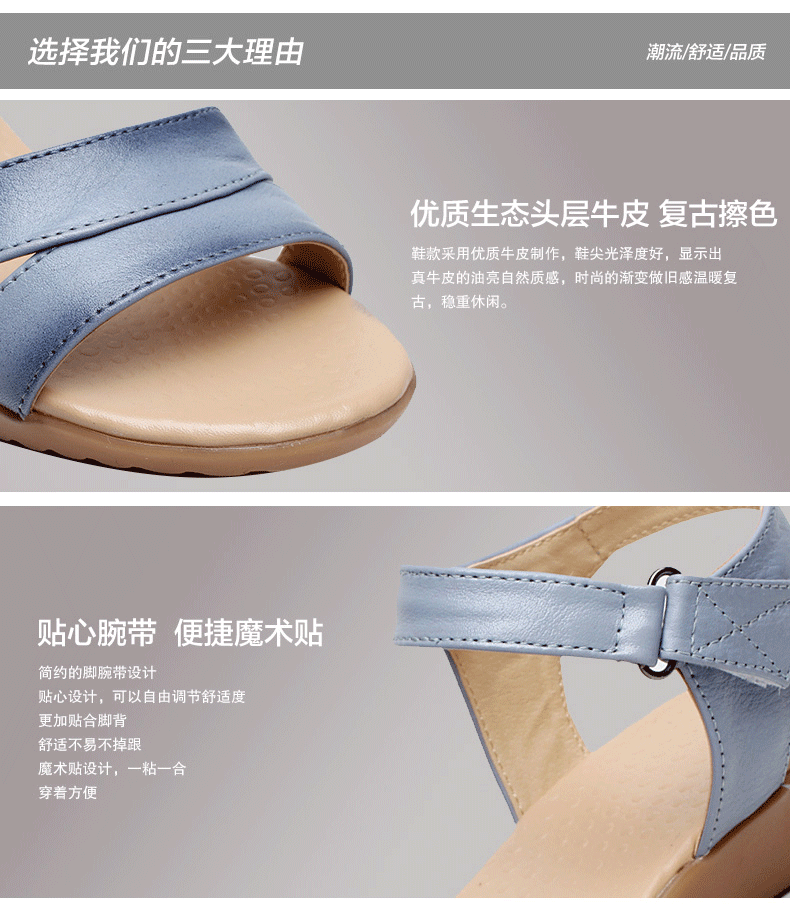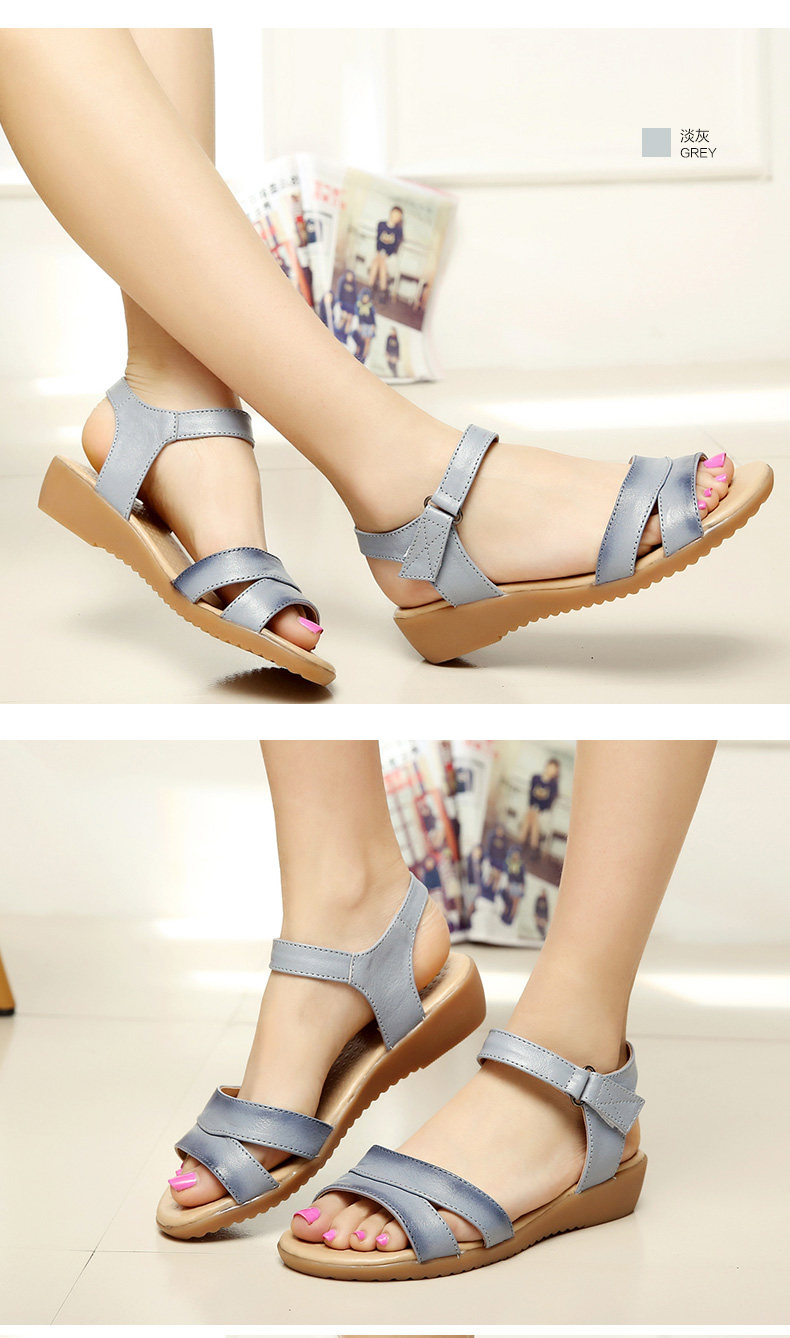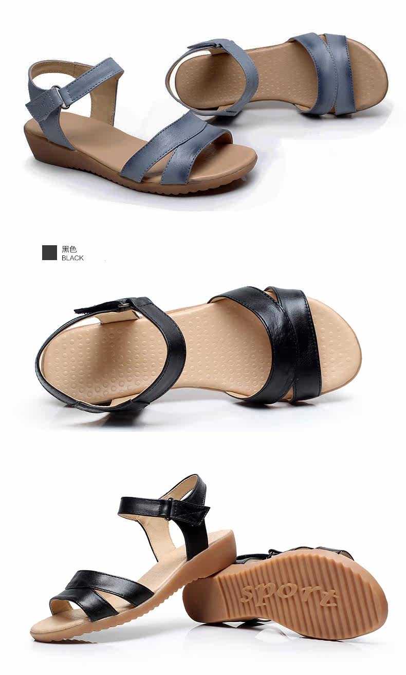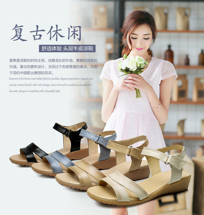 新款真皮复古女凉鞋平底孕妇鞋牛筋底女鞋休闲鞋