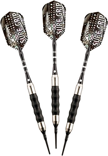 Viper Sure Grip soft tip darts are designed with high quality nickel silver plated barrels that provide exceptional balance and styling. Strategically placed grooves underneath a rubberized barrel sleeve provide excellent high traction gripping points, enhancing your control. Each dart features an aluminum shaft with a locking hole to increase tightness and improve stability. Viper Sure Grip darts include 2BA Tufflex Tips II soft tip dart points and high speed slim flights. The flights are specifically designed to help increase speed and reduce drag, delivering a consistent flight path and pinpoint accuracy. The 2BA Tufflex Tips II soft tip dart points have a reinforced cone that is extremely strong and durable. Simply twist for a tight, secure fitting and easy removal.Feature