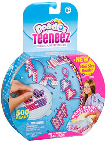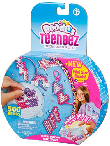 Now you can make even cuter Beados creations with Beados Teeneez! Teeneez are small so you can create more adorable designs! Create cute Teeneez Bag Tags for you and your Bestie! Make them, share them and wear them on your bags or anywhere else you choose. Beados Teeneez magically join with water! Simply spray and they stay!Feature