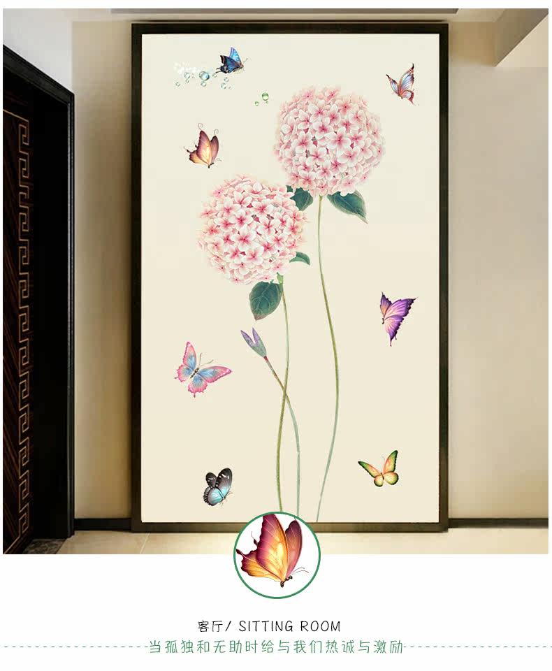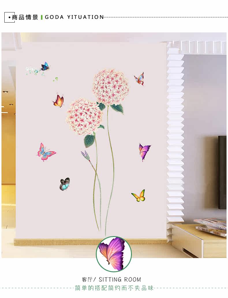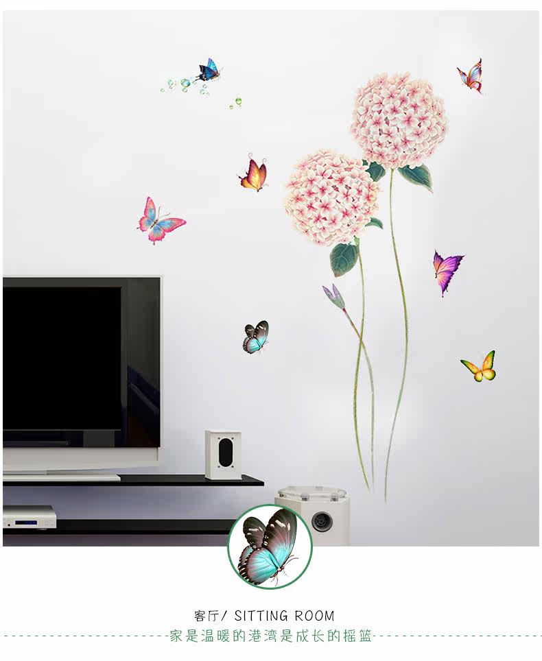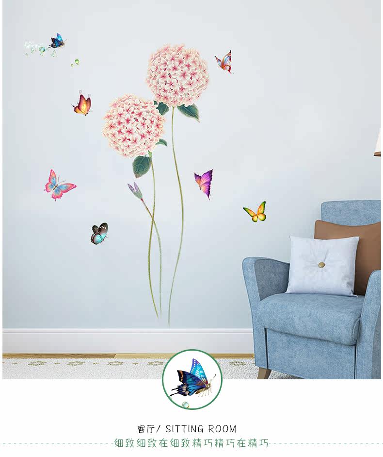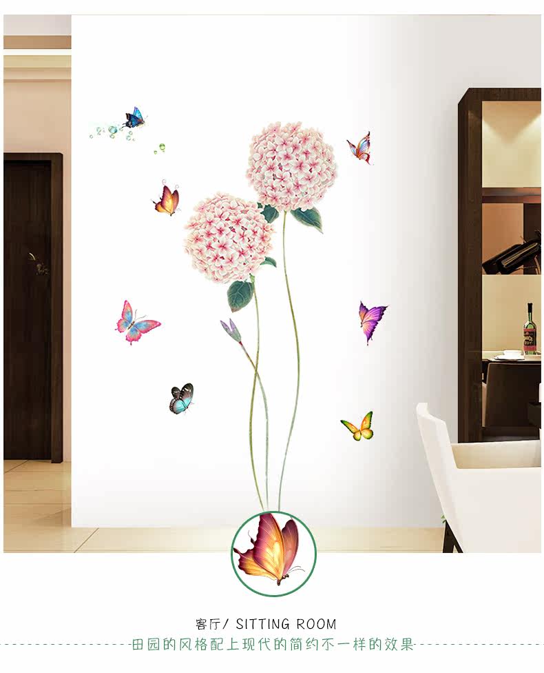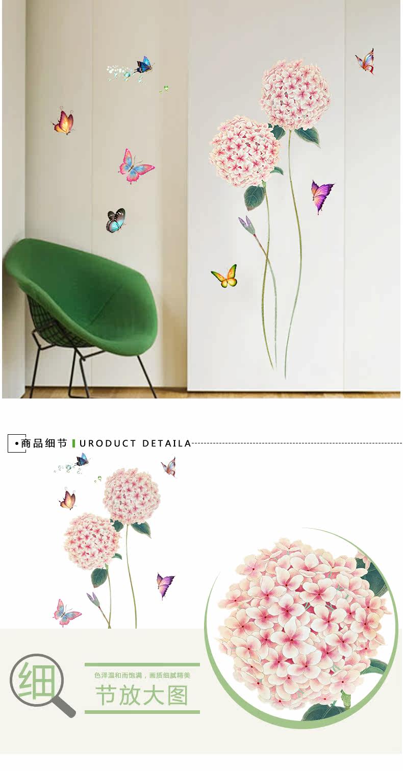 田园绣球花墙贴画客厅卧室房间温馨背景墙装饰品自粘墙纸贴画贴纸