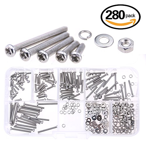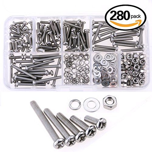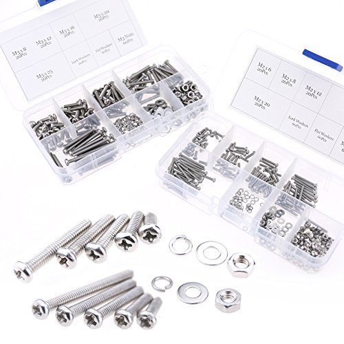 Glarks 560-Pieces M2 M3 Pan Head Phillips Stainless Steel Screws Bolts Nuts Lock and Flat Gasket Washers Assortment Kit