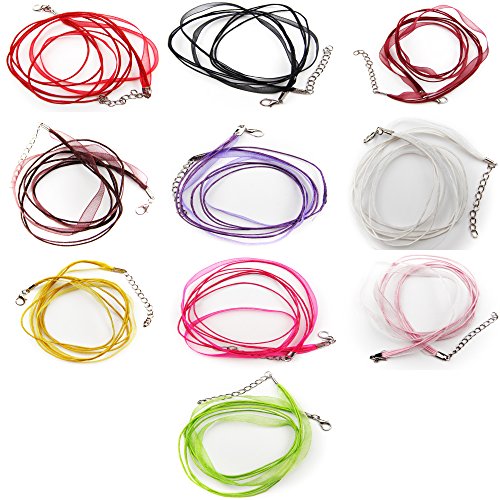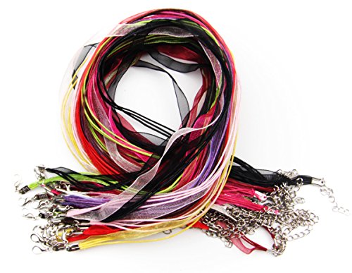 ALL in ONE Organza Ribbon Waxen Cord with Lobster Clasp Necklaces 43cm (17inch) 13 Color (Mix Color 25pcs)