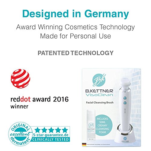 - SUPER PORTABLE AND COMFORTABLE: Designed in Germany and winner of the 2016 RedDot Award, the B. Kettner VisoClean Facial Cleansing Brush is perfect to take with you wherever you go. With a charger and the perfect size to fit inside your purse or travel bag, you'll never have to leave your exfoliating brush behind if you go on a trip.