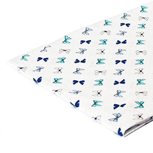 Vinlea Jersey fabric patterned, 39in. x 59in., 92% cotton, 8% spandex, Pattern: coloured bows (turquoise/dark blue)