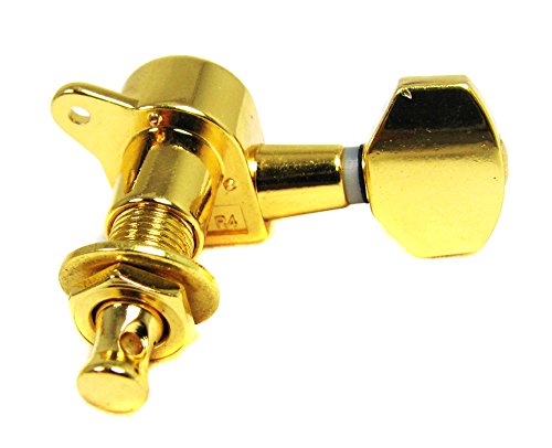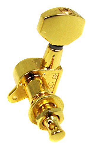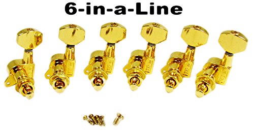 Studio : C. B. Gitty Crafter Supply Publisher : C. B. Gitty Crafter Supply Product Description This set of six sealed-gear gold tuners is the perfect accent for your new instrument build, or as a replacement for an existing guitar repair job. They are set up for use on a "6-in-a-Line" headstock (such as a Fender(tm) Strat(R) or Telecaster(R)-style electric guitar. This set includes all necessary mounting hardware: screw-in bushing, gold-plated washer, and mounting screws. They are intended for headstocks that are between 0.46" (11.72mm) and 0.65" (16.5mm) thick. A good rule of thumb is 1/2" to 5/8" thick, with 9/16" being the ideal. Trying to use these with thicker or thinner headstocks may not work. If you are looking for a great, affordable tuner/machine head style for your guitar, then look no further! 0
