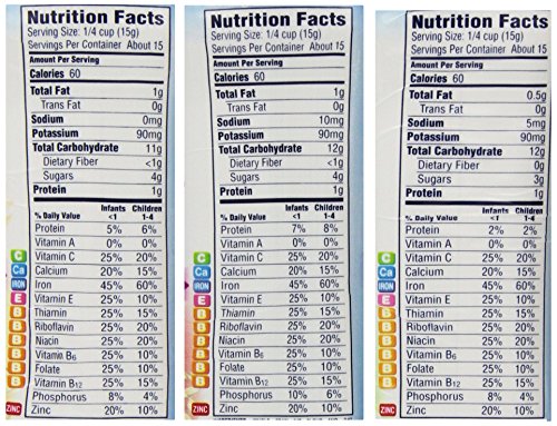 Fortified infant cereal provides big nutrition for tiny tummies. They are designed to provide essential nutrients in a small serving, perfect for a small tummy that can't hold much food at one time. Infant cereals are easy to digest and perfect for first tastes of solid food. Because you are mixing it, change the consistency by mixing it thinly, then moving to a thicker texture as your baby gets older. This lets you keep pace with his developing eating skills. Introducing new textures and flavors at the appropriate time is an important part of establishing lifelong healthy eating habits.Feature