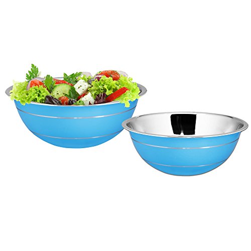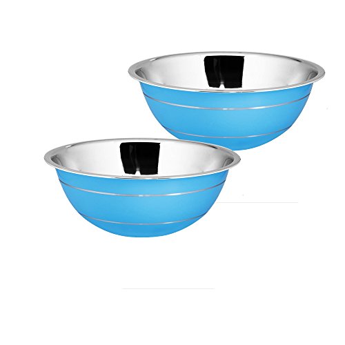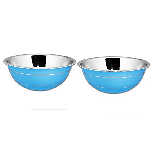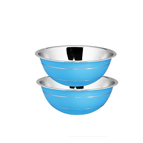 Kosma Set of 2 Stainless Steel Mixing Bowl | Salad Bowl in Blue Colour exterior and Mirror finish Interior - 16cm (0.75 Litre)