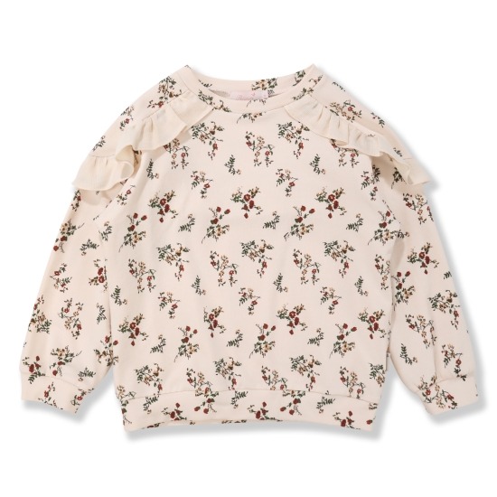 빈티지한 칼라감의 꽃나염이 돋보이는 맨투맨 변형 티셔츠입니다.프릴 장식 디테일을 더해 사랑스럽고 캐주얼하게 연출하실 수 있는 아이템입니다.