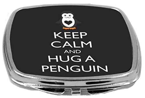 Rikki Knight Compact Mirror, Keep Calm and Hug a Penguin Black