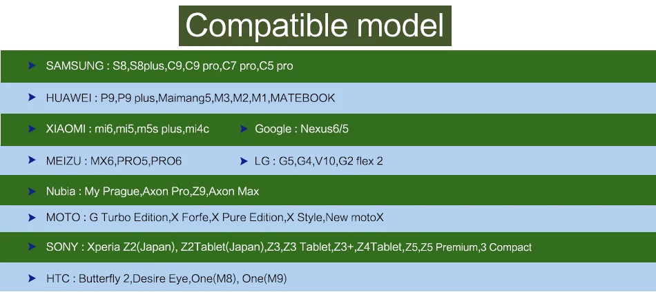Adaptation model 6:HUAWEI P10 P20 Pro P20 lite Nova P9 Plus P10 plus Mate9 Mate9 pro