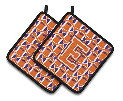 Caroline's Treasures Letter E Football Orange, White & Regalia Pair of Pot Holders CJ1072-EPTHD, 7.5HX7.5W, Multicolor