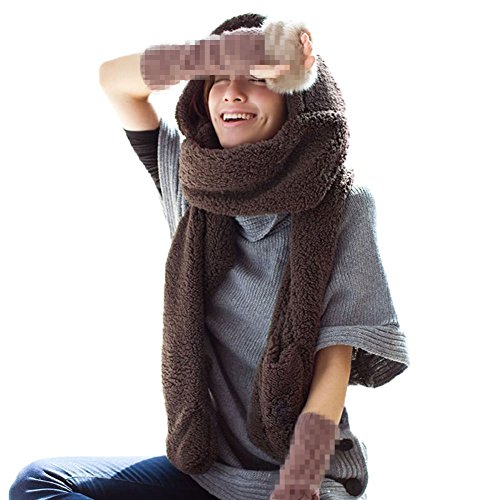 Binding : Apparel Product Description Features: This scarf can also be used as hat and gloves Soft and comfortable to wear, keep you warm and look beautiful in the cold weather Easy to match and suitable for any style of clothes Fashionable unique design, great as a gift Machine washable, no bleach, line dry Material: Coral fleece Package includes: 1 * Hooded Scarf (!!! fingerless mittens are not included!!!) 0